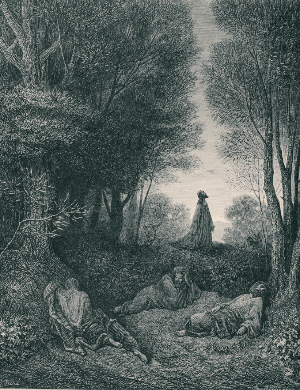 세 번째 기도를 마치신 예수님은 제자들을 깨우며 말씀하십니다. “이제는 조용하라 그만 자자… 때가 왔도다 보라 인자가 죄인의 손에 팔리는이라… 일어나라 함께 가자 보라 나를 파는 자가 가까이 왔느니라”(막 14:41-42).
