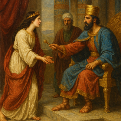 에스더서는 페르시아 제국 아하수에로 왕(헬라식 이름 크세르크세스 1세) 시대를 배경으로 하고 있습니다. 주요 무대는 왕의 궁전인 ‘수산성’이며, 등장인물로는 왕후 와스디, 새 왕비가 되는 에스더, 그녀의 사촌 모르드개, 그리고 유대인을 말살하려는 악한 인물 하만이 있습니다.