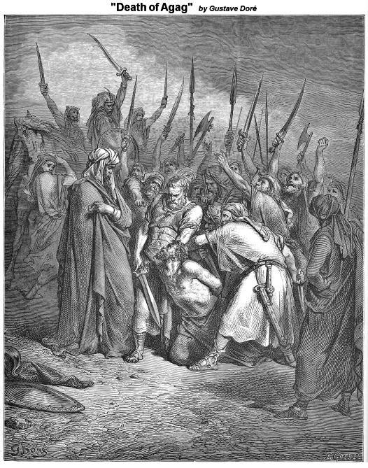 사무엘은 사울에게 아말렉을 치라고 말합니다. 아말렉은 이스라엘이 애굽에서 나올 때 비겁하게 뒤쳐진 사람들을 잡아 죽인 자들입니다. 사울은 아말렉을 쳐서 이기지만 백성들을 위한 다면서 좋은 것은 남기고 병든 것만 죽입니다. 사울은 갈멜에 이르러 자신을 위해 기념비를 세웁니다. 사무엘은 사울을 찾아가 남겨온 가축을 보고 이게 무슨 소리냐고 묻자 사울은 여호와께 번제하려 한다고 말합니다. 사무엘은 여호와께 번제하는 것보다 말씀에 청종하는 것을 기뻐하신다고 말합니다. 아각도 죽이지 않고 데리고 있자 사무엘이 직접 아각을 죽입니다.