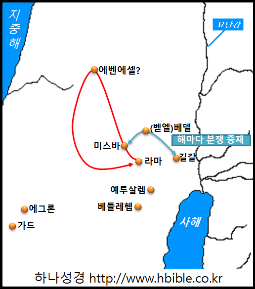 사무엘상 7:16 해마다 벧엘과 길갈과 미스바로 순회하여 그 모든 곳에서 이스라엘을 다스렸고