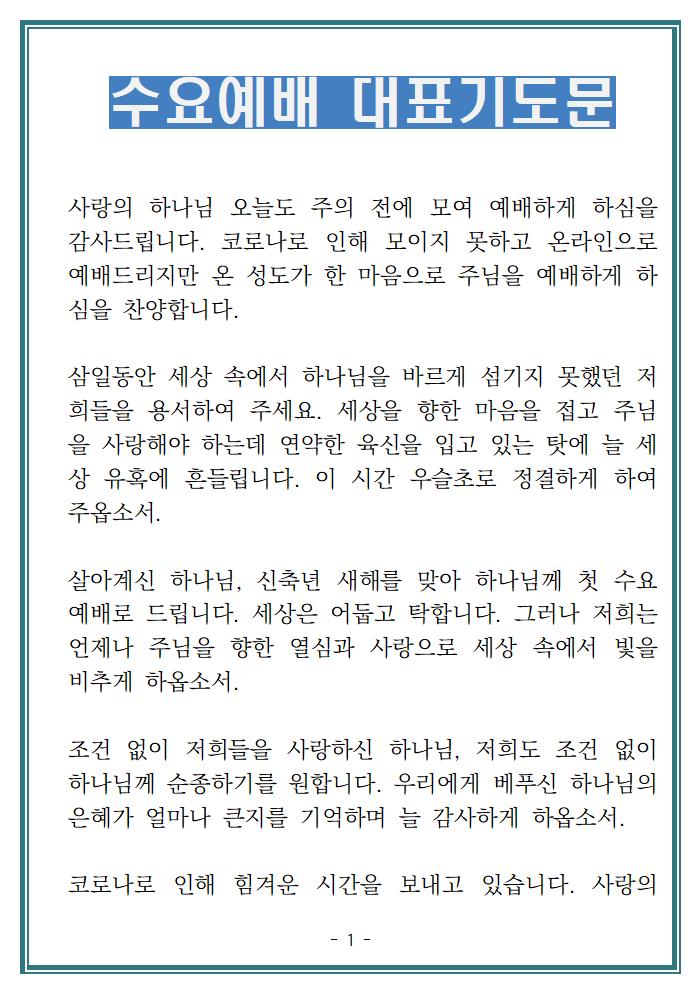 | 수요기도회 대표기도문 (0) | 2021.01.26 |