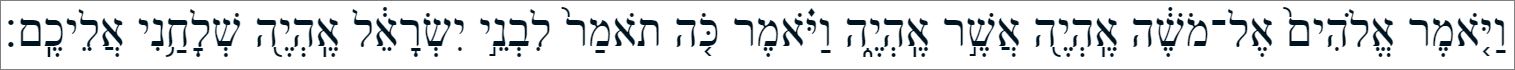 여기서 여호와 또는 야훼라는 단어가 사용된 곳은 14절 '나는 스스로 있는 자니라'이다. 이곳에 사용된 단어가 바로 히브리어 야훼이다. 약간 오해가 있을 수 있으니 다시 히브리어로 돌아가 보자.