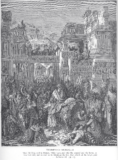 하만은 자신이 모르드개를 달기 위해 세운 나무에 거꾸로 매달려 처형됩니다(에 7:9-10). 모르드개는 하만의 자리에 올라 왕의 총애를 받습니다(에 8:1-2). 에스더와 모르드개는 새로운 조서를 내려 유대인들이 자신을 방어할 수 있도록 합니다(에 8:8-14).