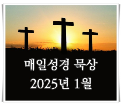 아래의 이미지를 클릭하시면 2025년 1월 매일성경 본문표를 보실 수 있습니다. 각 날짜와 본문을 클릭하시면 본문에 해당되는 묵상 글을 볼 수 있도록 했습니다.