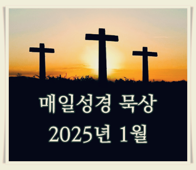 아래의 이미지를 클릭하시면 2025년 1월 매일성경 본문표를 보실 수 있습니다. 각 날짜와 본문을 클릭하시면 본문에 해당되는 묵상 글을 볼 수 있도록 했습니다.