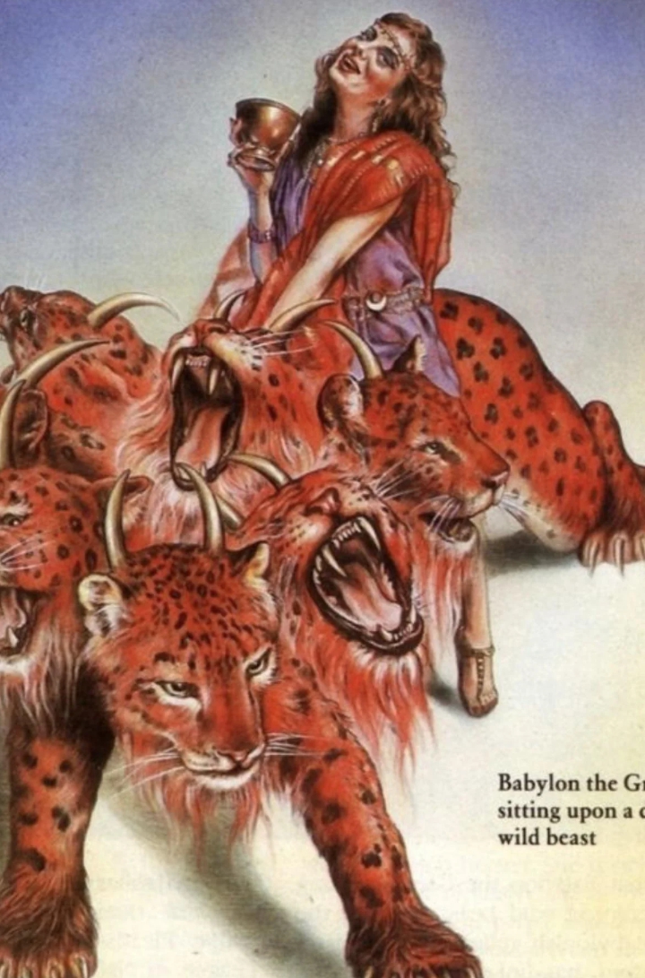 - 상징: 붉은 빛 짐승은 정치적 권력과 세속적 풍요를 숭배하는 문화의 상징이다. 음녀는 세속적 탐욕과 도덕적 타락을 대표하며, 짐승은 이러한 문화와 권력의 중심 역할을 한다.