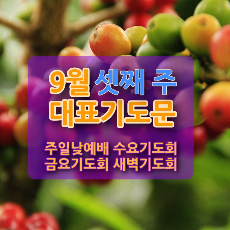 주일낮예배대표기도문, 수요예배기도문,금요기도회기도문,새벽기도회기도문(9월 셋째 주)