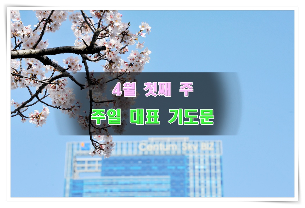 만물이 소생하는 4월 첫째 주일에 주님을 찬양하며 예배하게 하신 하나님을 찬양합니다. 저희들을 사랑하사 하나님의 높으신 이름을 찬양하는 거룩한 백성으로 삼으사 하나님의 나라를 위하여 살아가게 하심을 감사드립니다. 저희들의 심령 속에 하나님을 사랑하는 마음으로 채워 주시고, 우리는 사랑하시는 하나님의 긍휼을 깊이 체험하는 시간이 되게 하옵소서. 오늘도 허물 많은 저희들을 주의 품에 안아 주시고 사랑하여 주심을 감사드립니다. 온 마음과 뜻을 다해 예배하는 시간 되게 하옵소서.