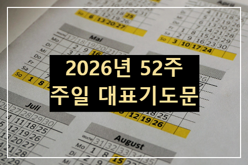 2026년 52주 각 주일 대표기도문은 아래의 링크에서 확인 바랍니다. 각 주별로 주일 대표기도문 중심으로 작성되었습니다. 절기와 계절, 교회의 다양한 행사를 염두에 작성했습니다.