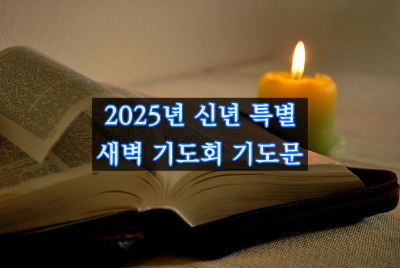 벌써 2025년이 다가왔습니다. 계엄과 탄핵으로 인해 아직도 암울한 기분이 가시지 않지만 모든 역사는 하나님의 손안에 있음을 믿고 우리는 나라가 안정되기를 기도할 뿐입니다. 특별 새벽기도회 기도문을 작성하여 함께 나눕니다. 하나님의 풍성한 은혜가 임하기를 원합니다.